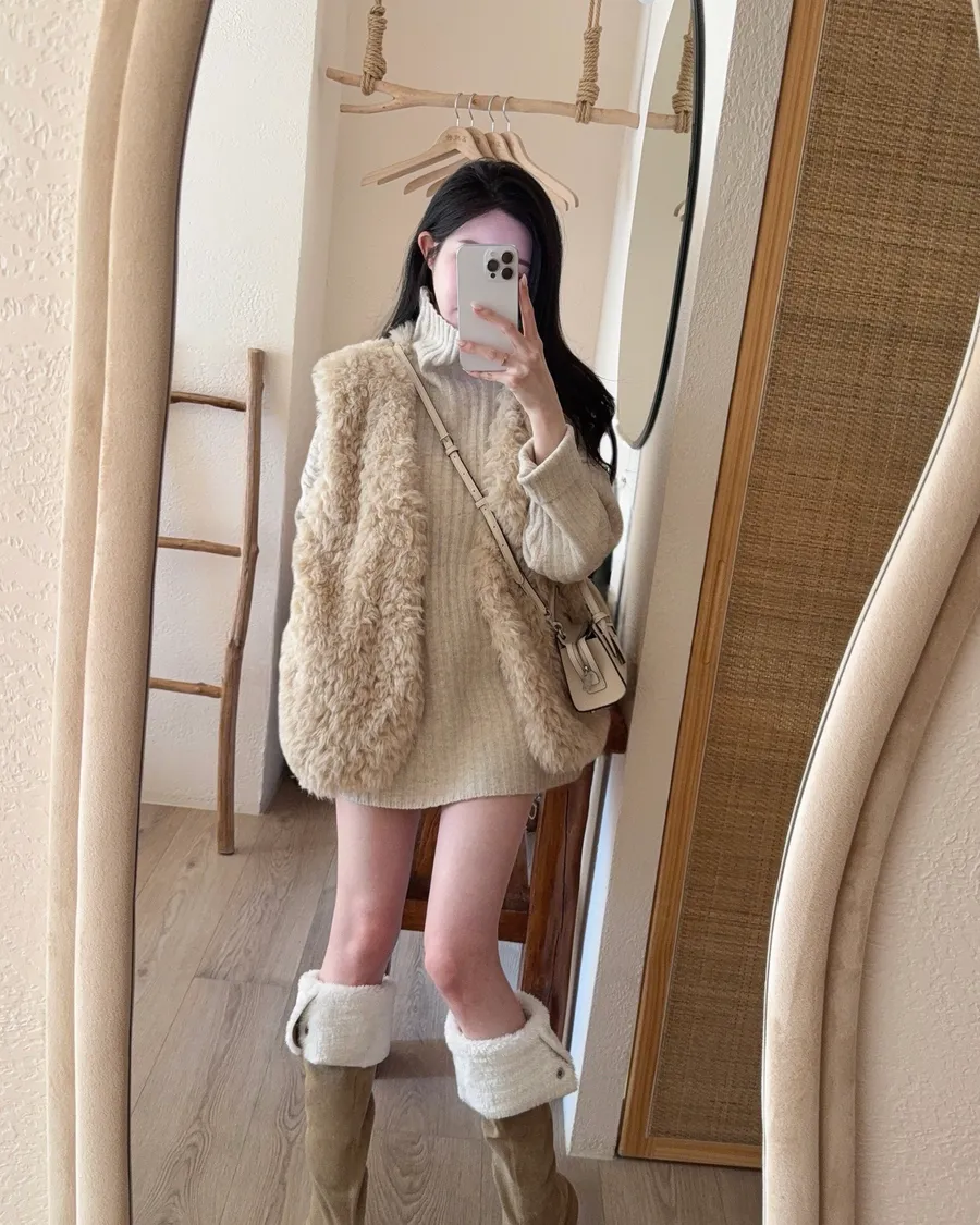 現貨 – 泰迪毛毛背心毛衣set