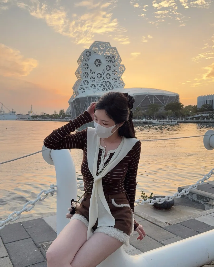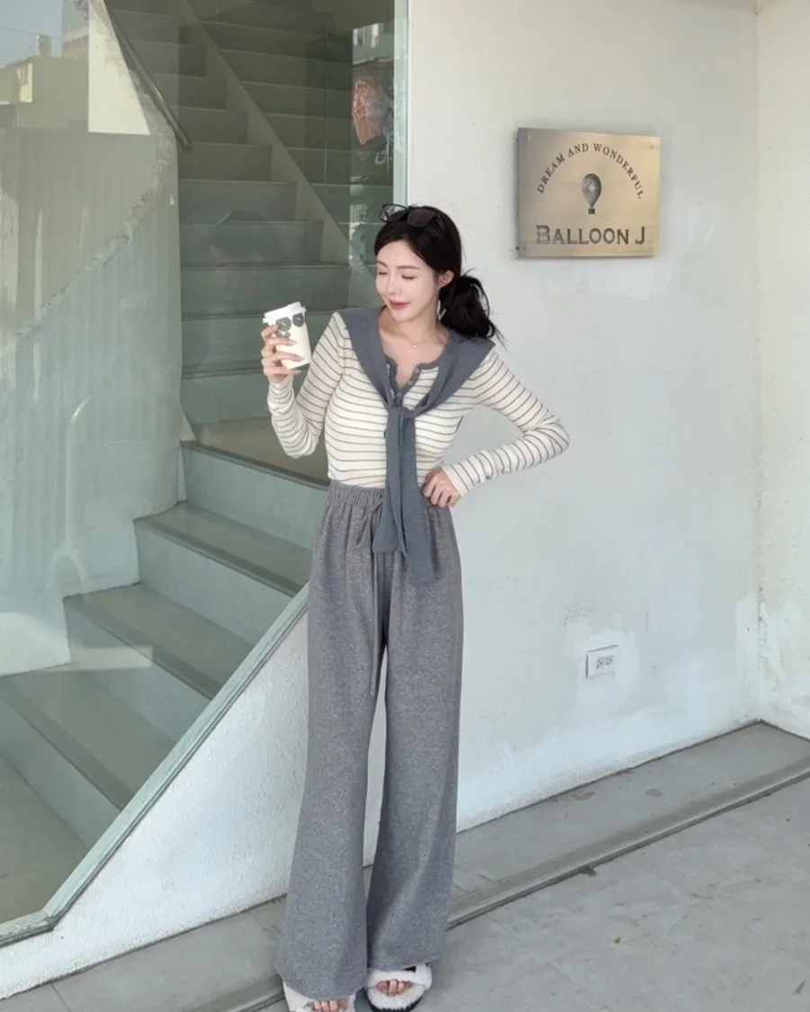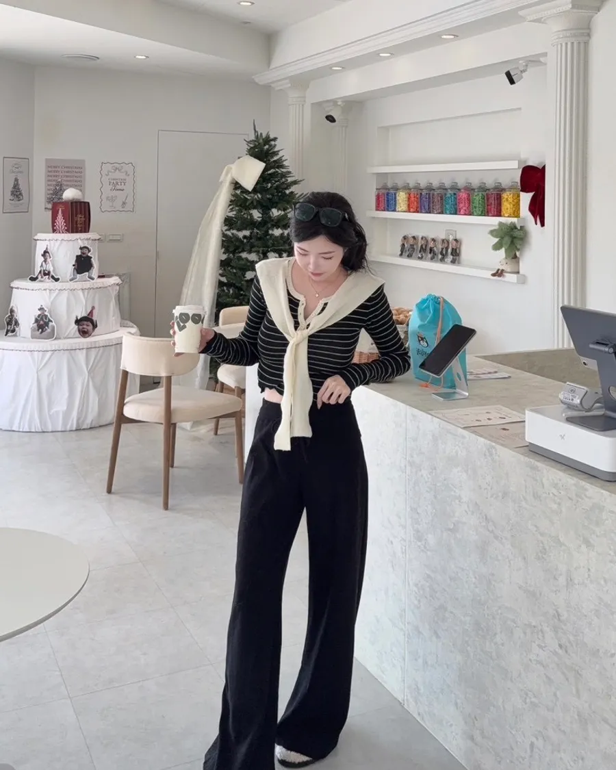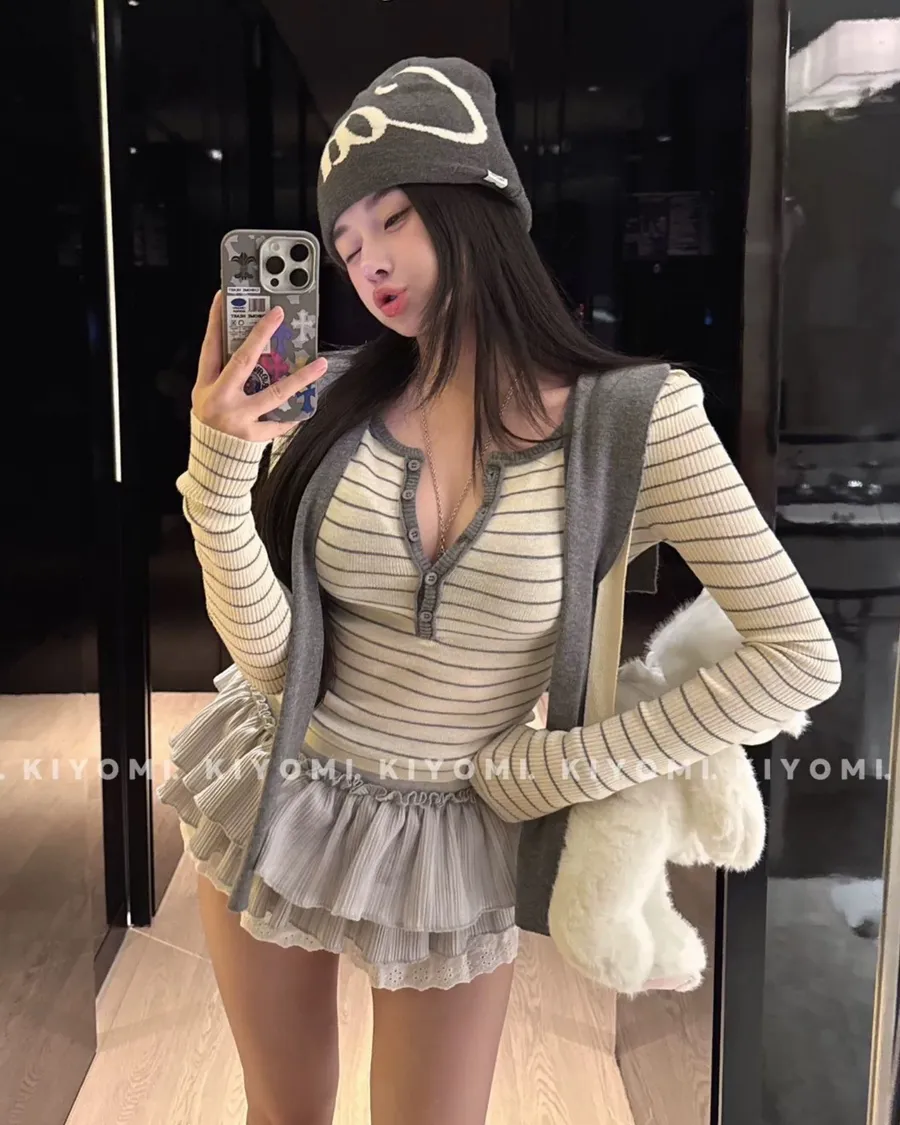 現貨 – 條紋披肩假兩件式上衣