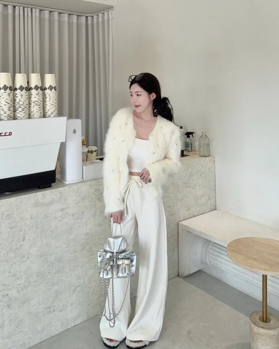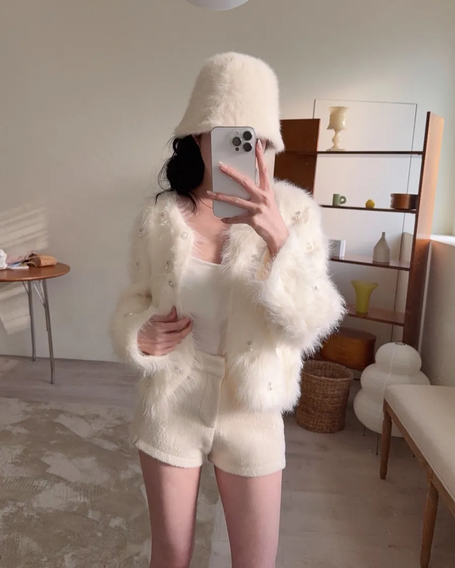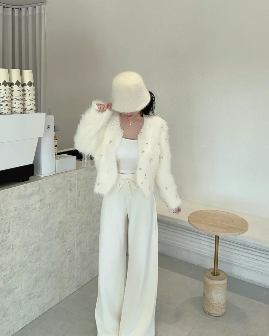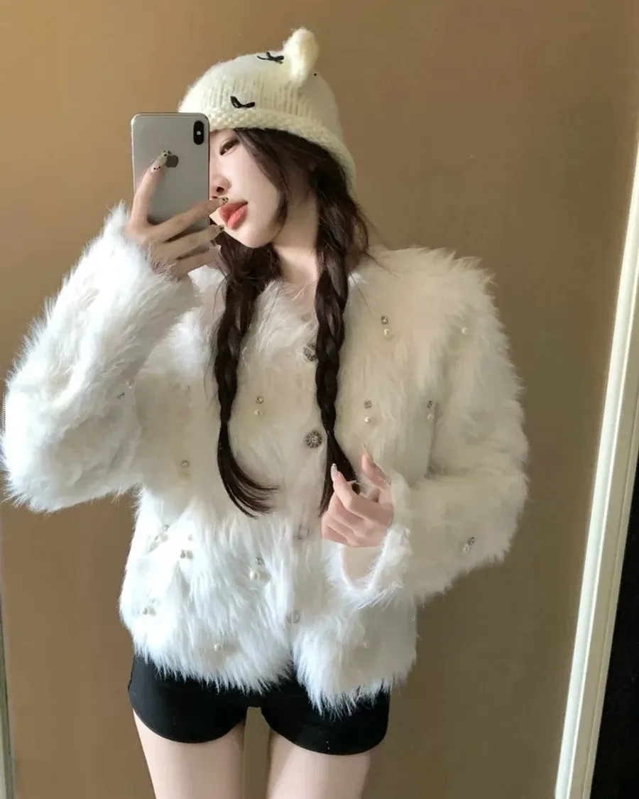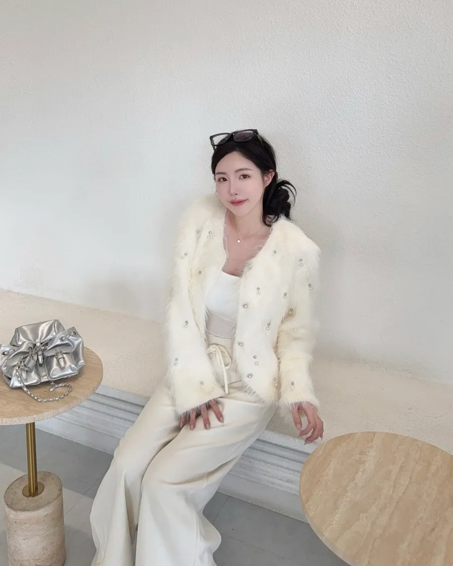 現貨 – 仿貂毛手工訂鑽毛毛外套